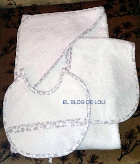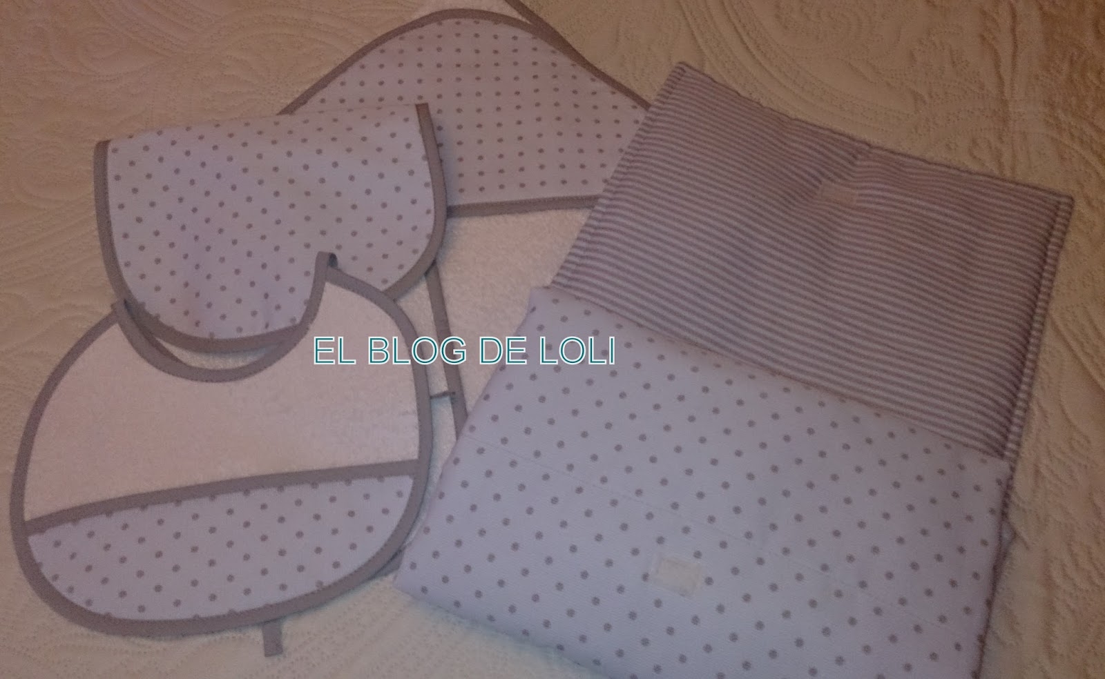 La tela es de pique gris, el cambiador, la toallita de lactancia y el babero para llevarlo en el carrito.